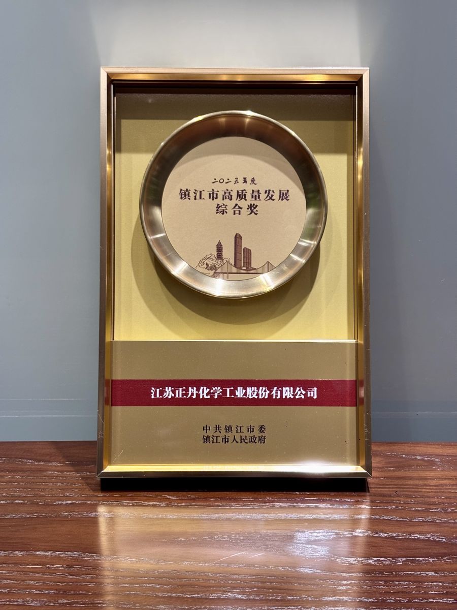 近日,江苏正丹化学工业股份有限公司荣获2025年度镇江市高质量发展综合奖,公司董事长曹正国先生荣获镇江经开区高质量发展优秀企业家称号。